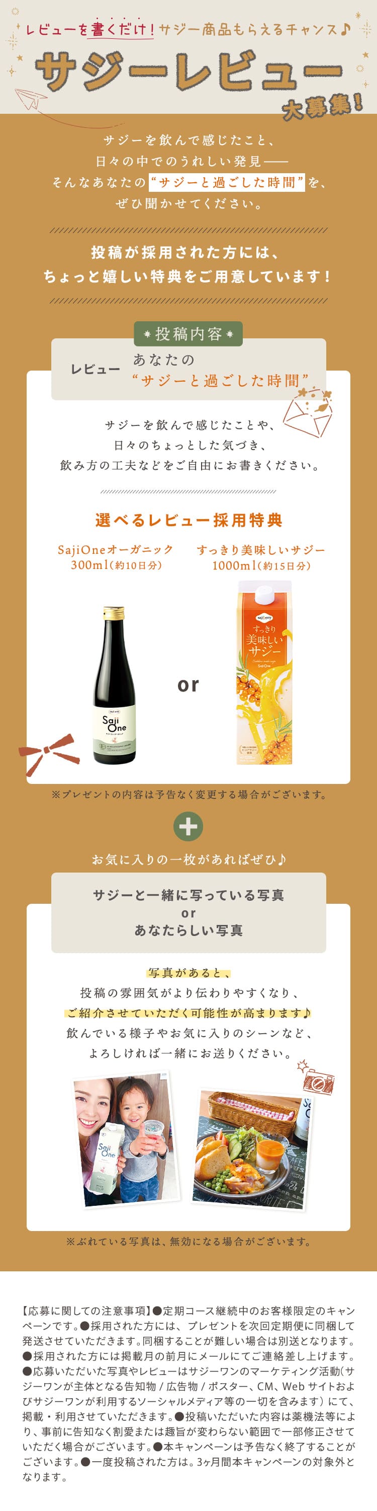 写真を投稿される場合は、サジーと一緒に写っている写真、またはあなたらしい写真(飲用シーン・アレンジ・利用シーン等)が分かる写真をお送りください(写真の投稿は任意です)。