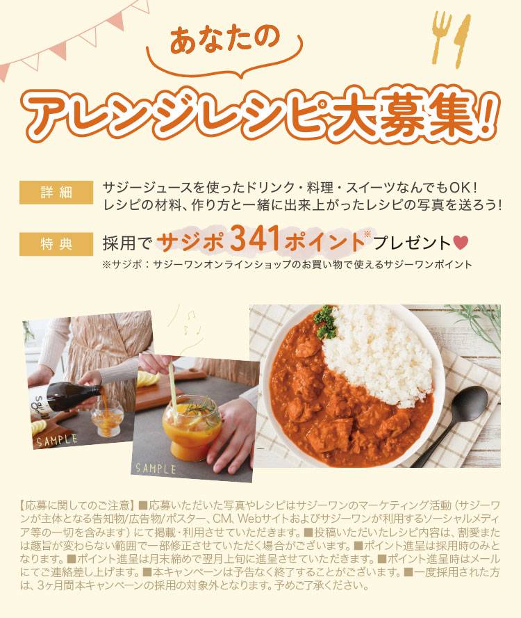 例)サジーハンバーグ、鶏のから揚げ~サジーソースを添えて~